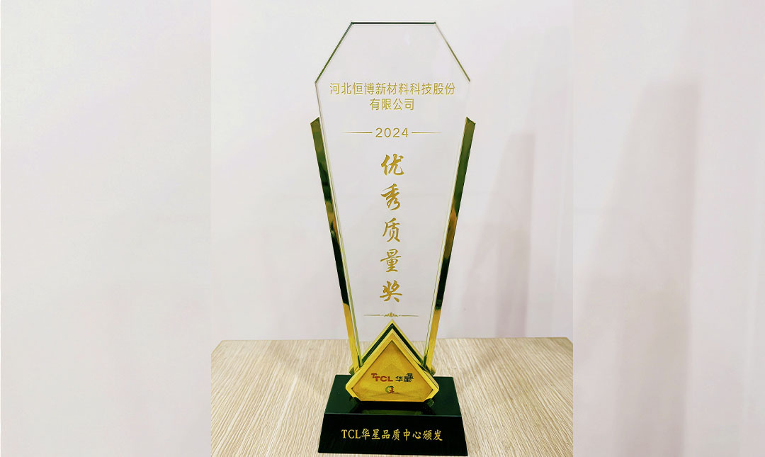 河北恒博新材料科技股份有限公司產(chǎn)品銦錫氧化物材料(ITO靶材),榮獲TCL華星光電品質(zhì)中心頒發(fā)的“優(yōu)秀質(zhì)量獎”。